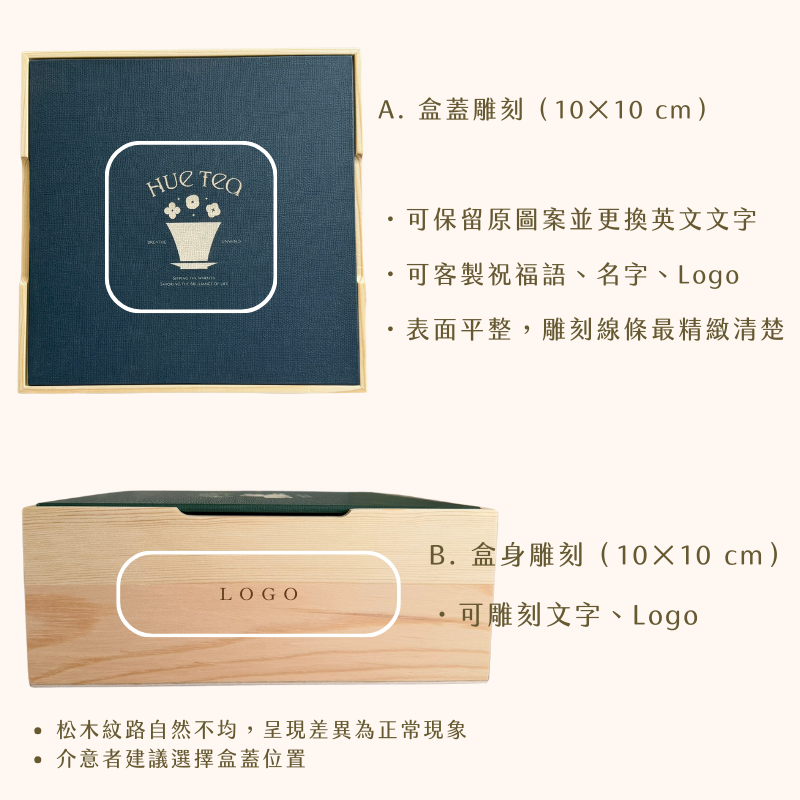 ・刻字位置將依禮盒設計與字數做最佳排版,出稿前可提供預覽確認。