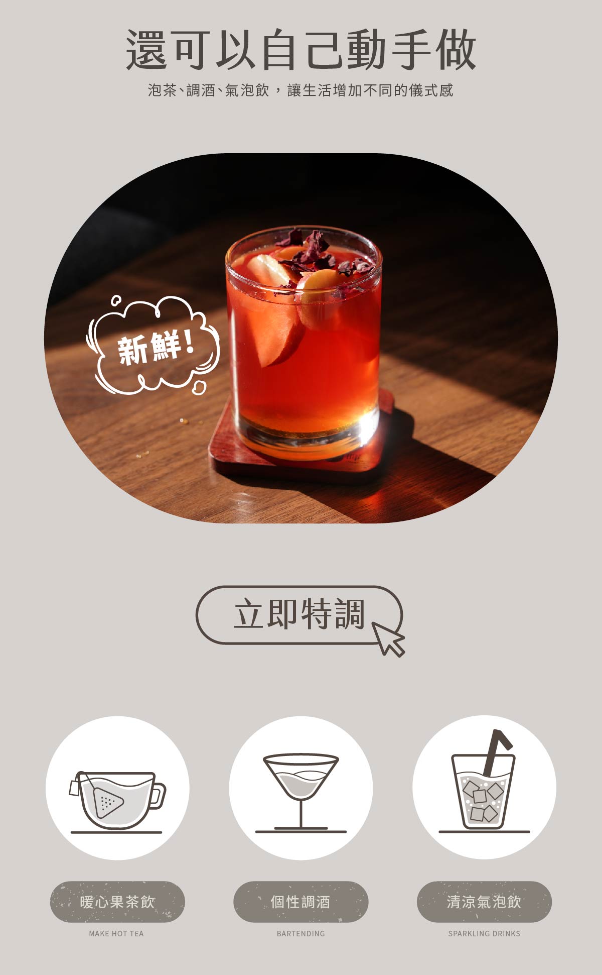 快速冷泡法:用少量熱水沖泡茶包約4分鐘,待味道釋放後,再加入冰塊。